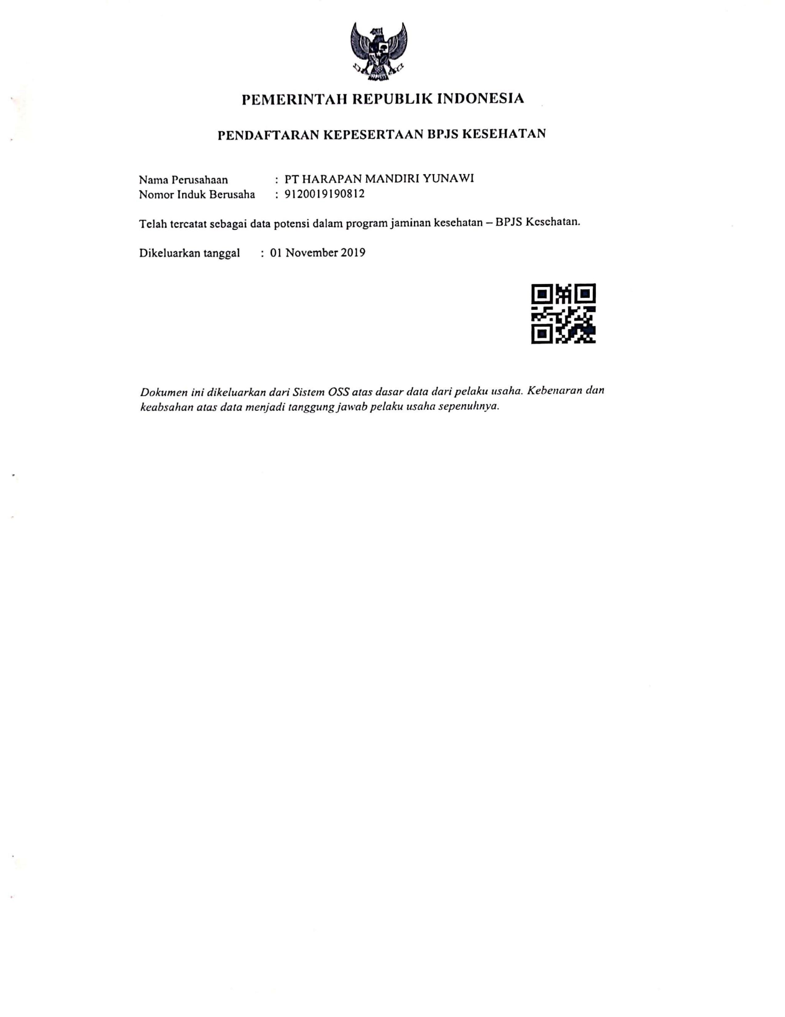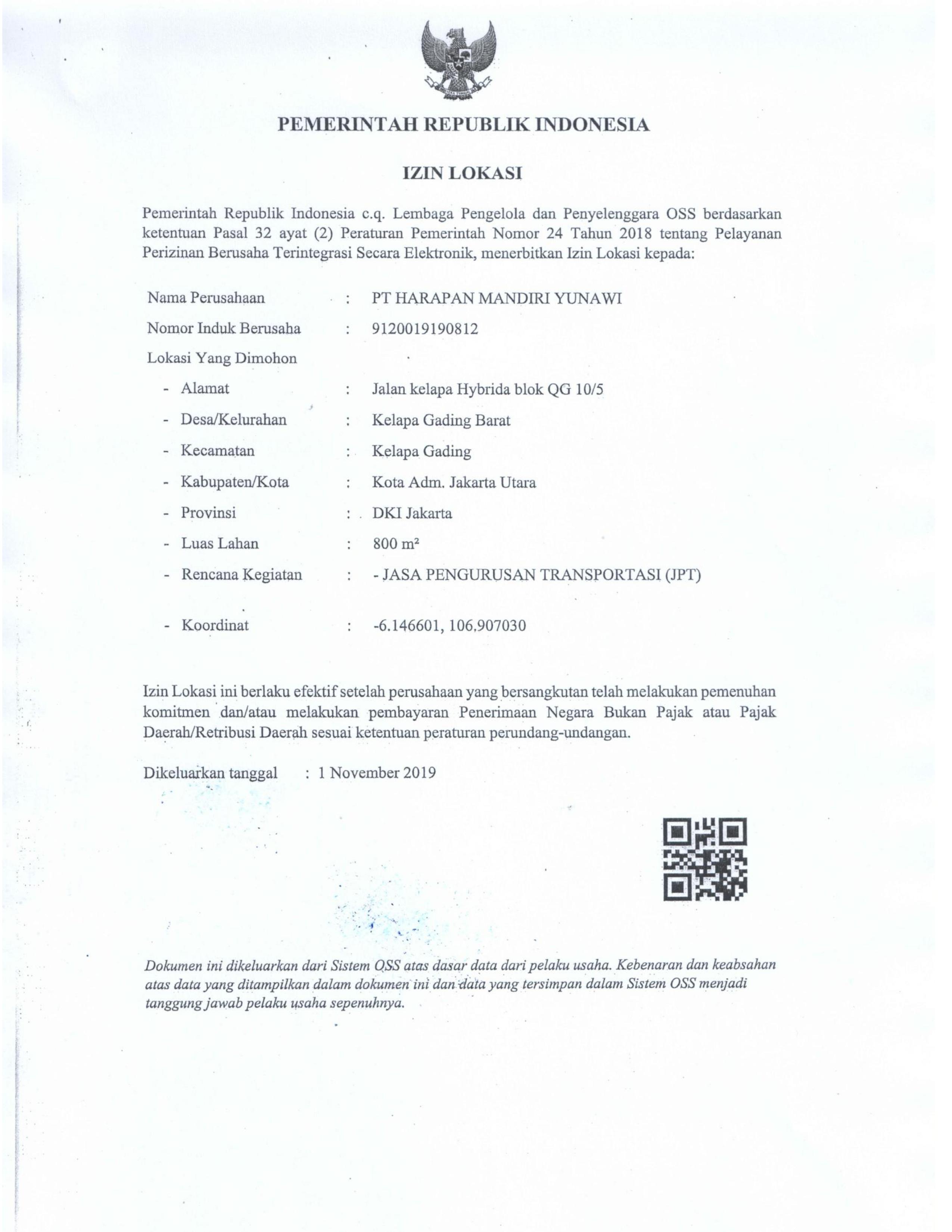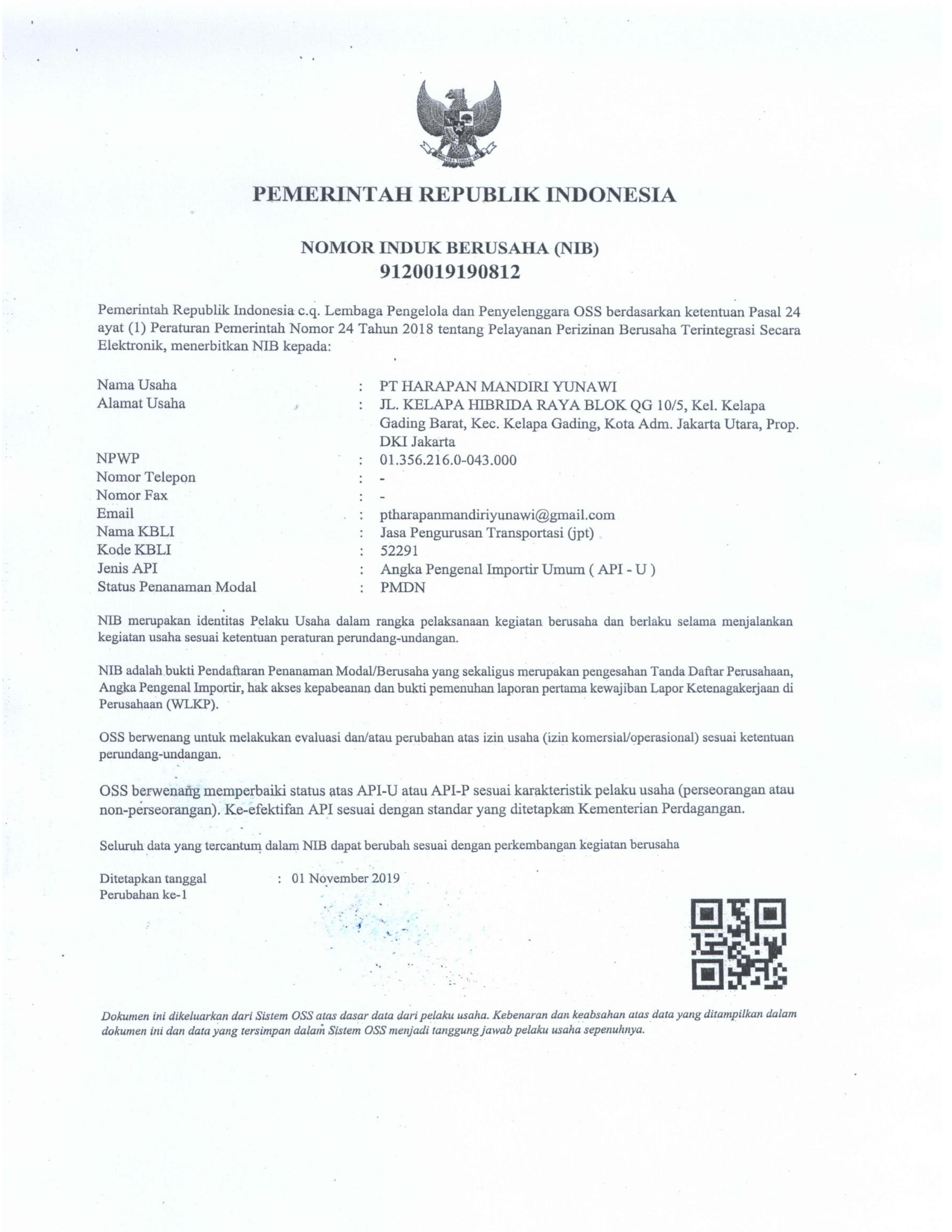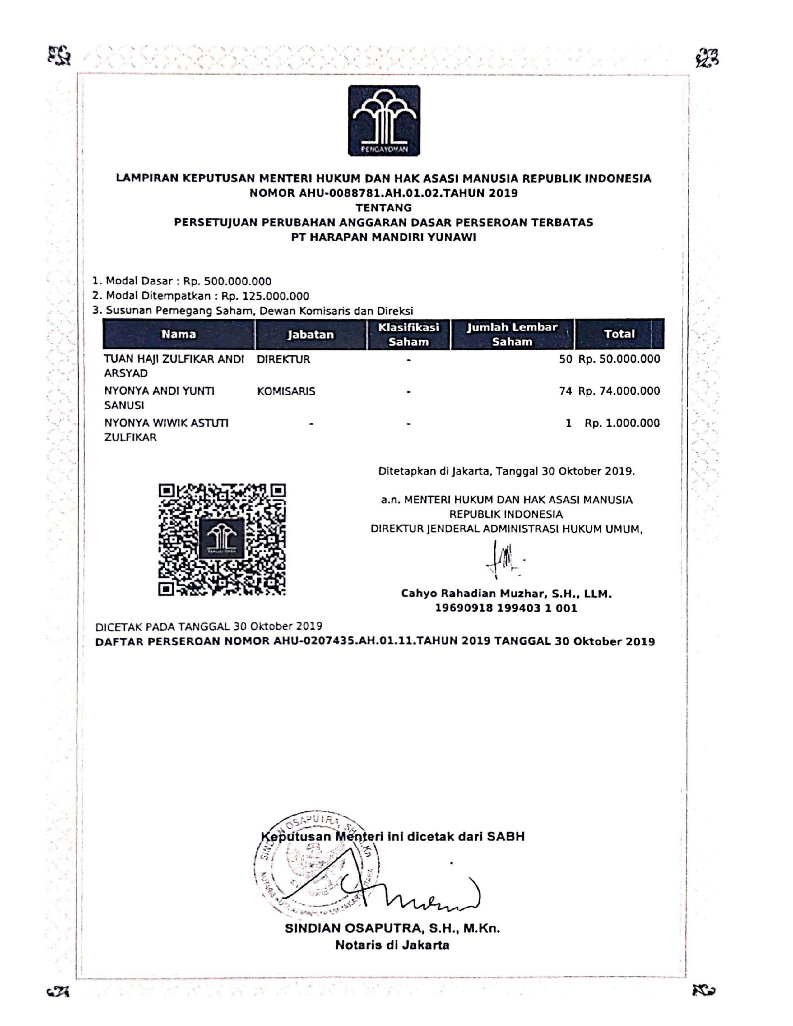 Legalitas PT. Harapan Mandiri Yunawi