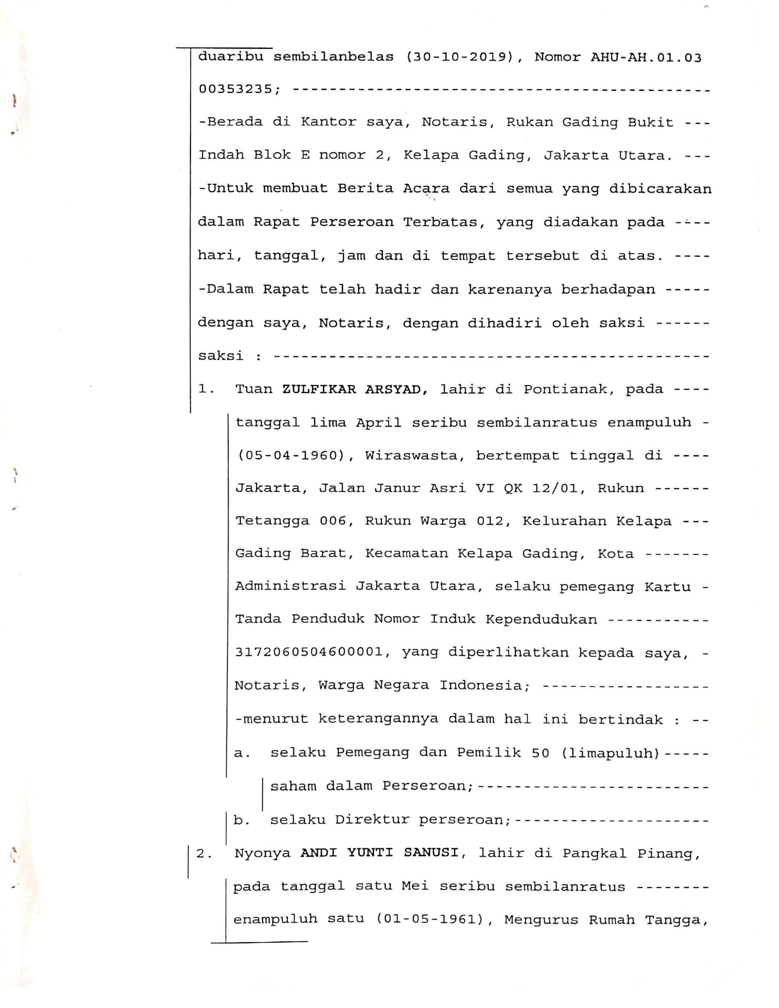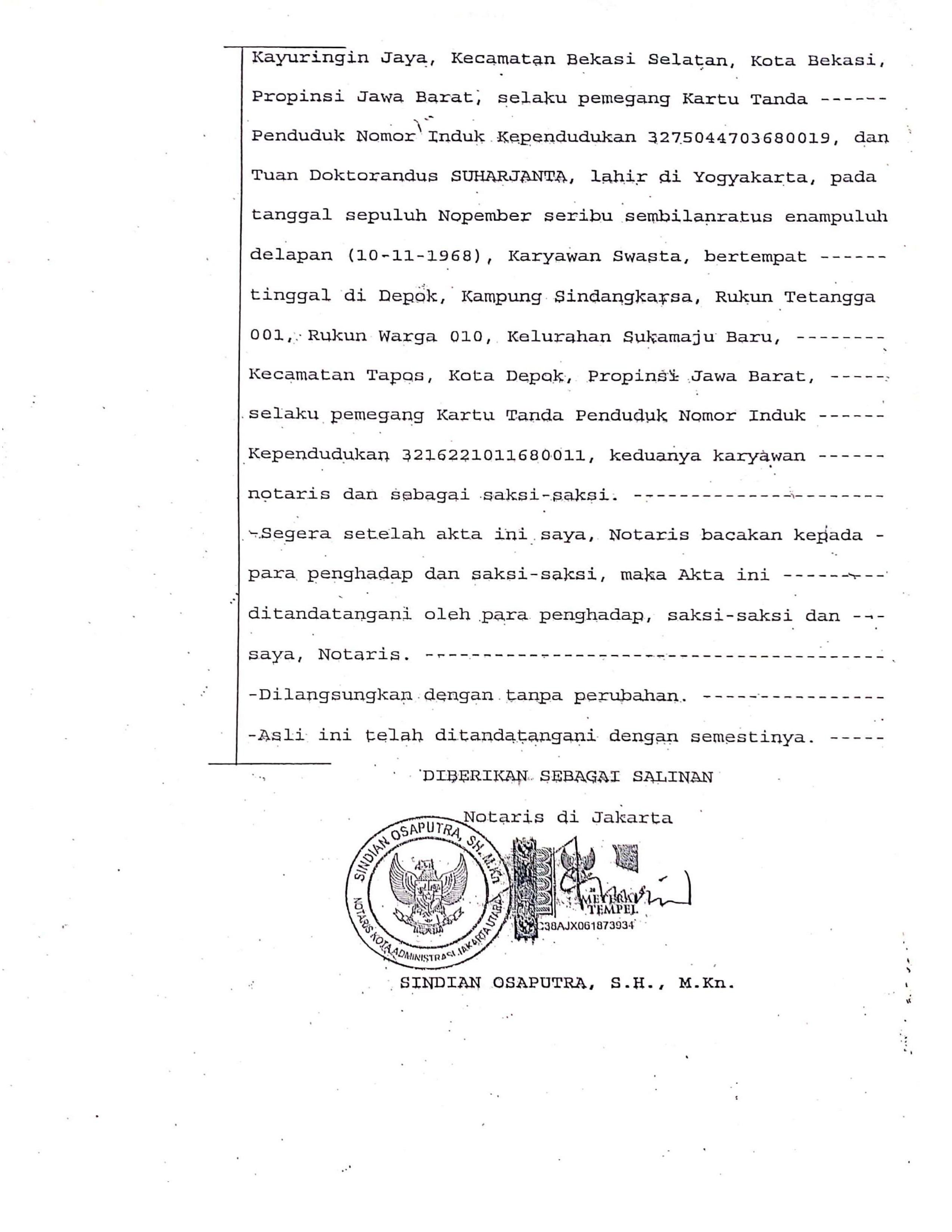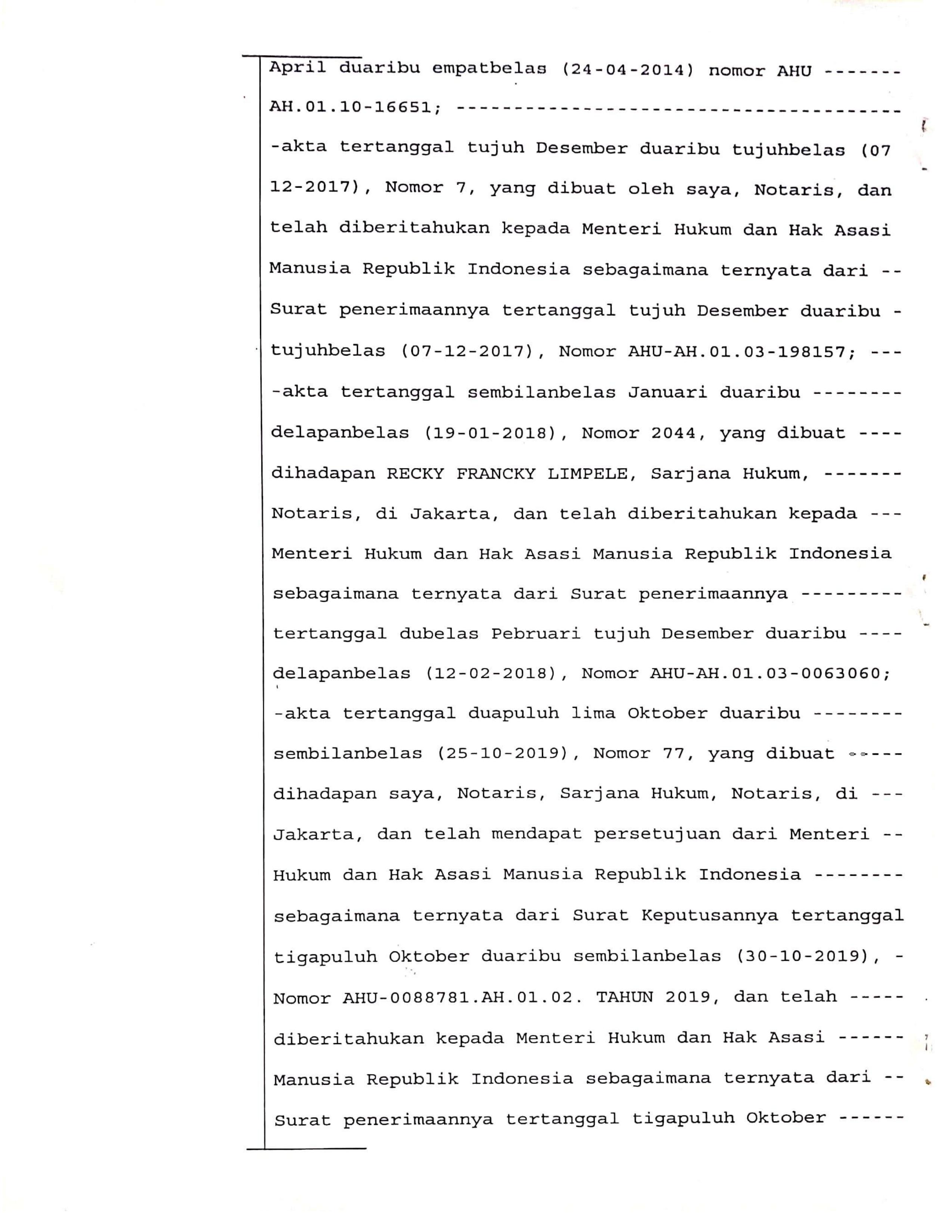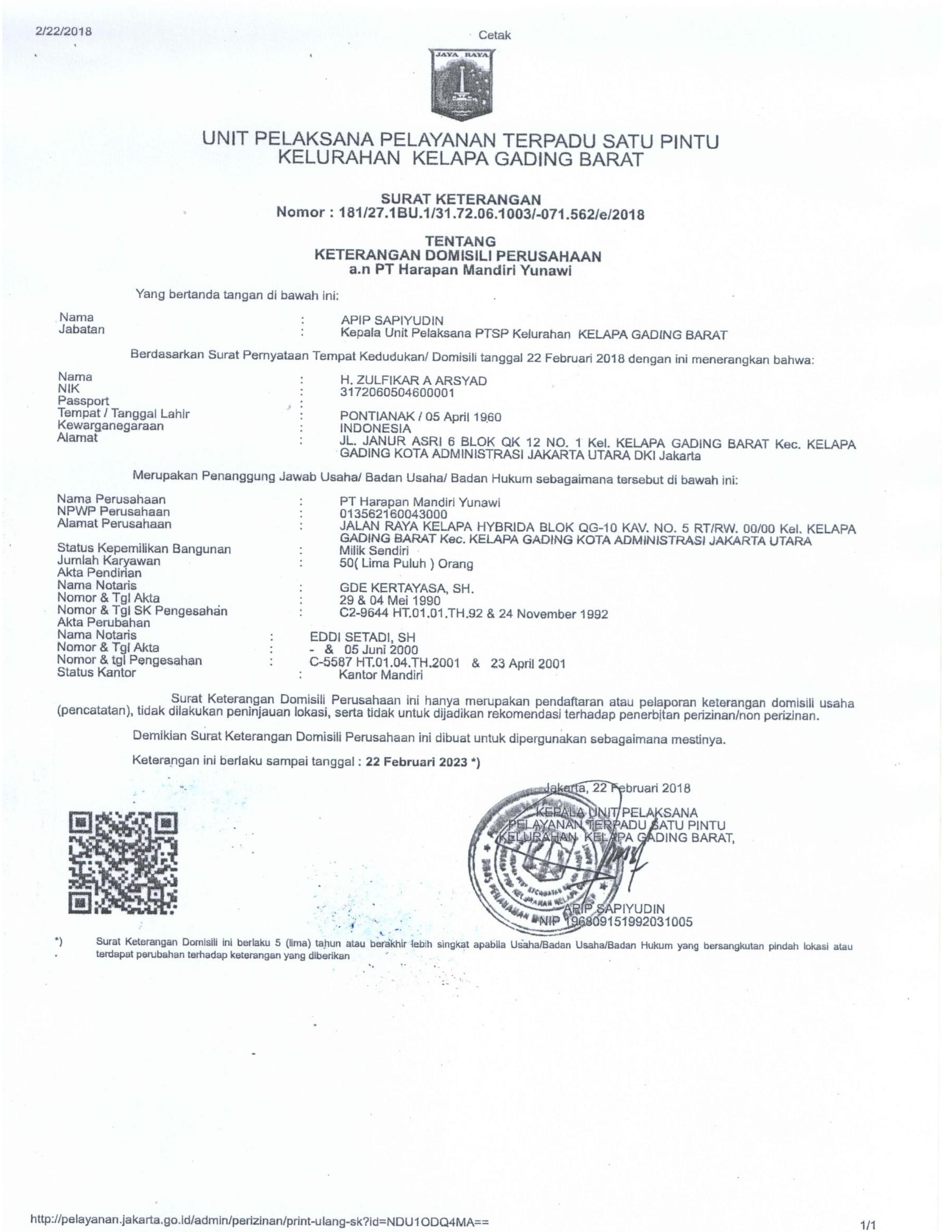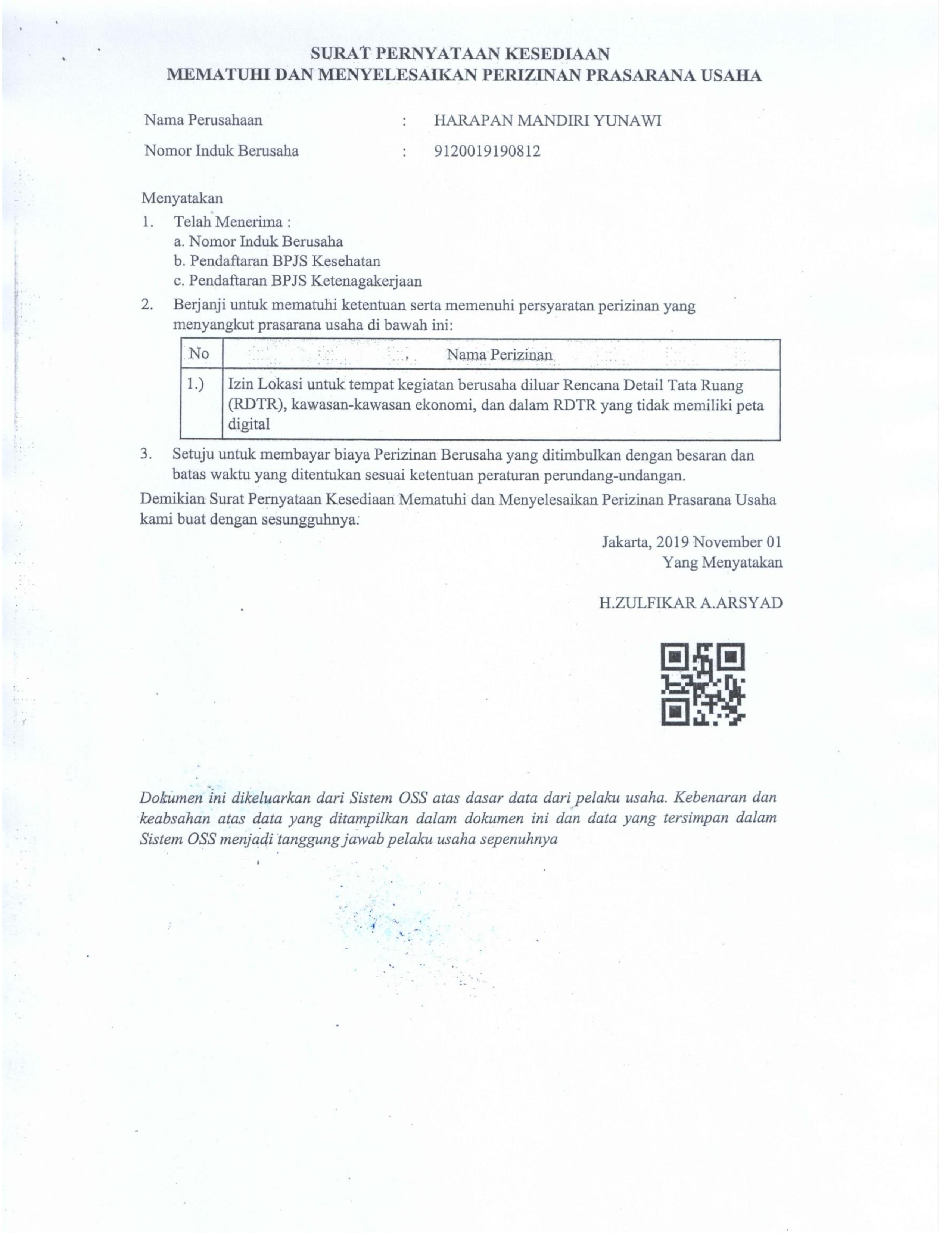Legalitas PT. Harapan Mandiri Yunawi